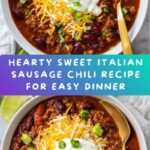For a fun twist, try serving this Sweet Italian Sausage Chili Recipe in hollowed-out bread bowls for a rustic, cozy vibe. You can also transform it into a chili bar by offering various toppings—avocado slices, jalapeño peppers, diced tomatoes—so guests can customize their bowls. Another playful idea is to spoon it over baked fries or nachos for a shareable crowd-pleaser that turns dinner time into a celebration.