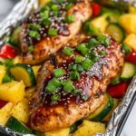 - Add Vegetables and Pineapple: Top each chicken breast with fresh pineapple chunks, sliced red bell pepper, carrot slices, and zucchini slices to add sweetness and crunch.