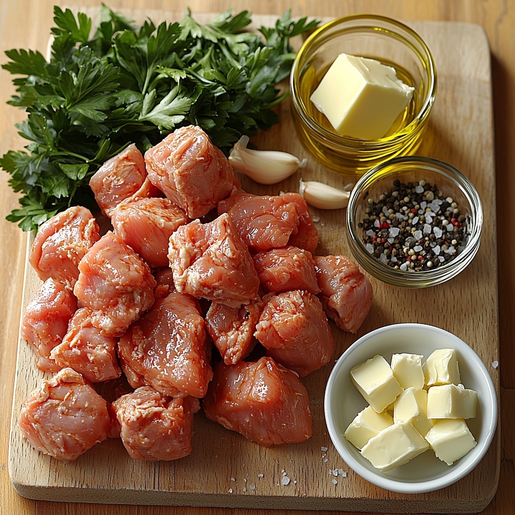 - 1 ½ pounds chicken breast or thighs: Bite-sized pieces cook quickly and absorb all the garlicky buttery goodness.