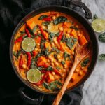 A vibrant and comforting Thai Red Curry featuring tender butternut squash and protein-rich chickpeas simmered in a creamy coconut milk sauce infused with fragrant red curry paste, fresh lime, and aromatic basil. This dish is perfect for a hearty vegan or vegetarian meal and beautifully balances sweet, spicy, and tangy flavors.