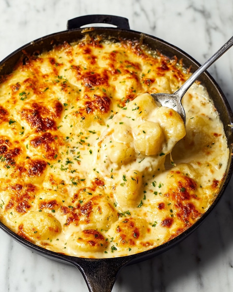 This cheesy gnocchi masterpiece pairs brilliantly with simple sides that balance its richness. A crisp green salad with a tangy vinaigrette, steamed or roasted vegetables like broccoli or asparagus, or even a light tomato-based side can bring brightness and freshness to the plate, making the meal well-rounded and satisfying.