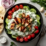- Make Tzatziki Dressing: While the chicken is resting, combine Greek yogurt, grated cucumber, lemon juice, chopped dill, and chopped parsley in a medium bowl to create the creamy tzatziki base.