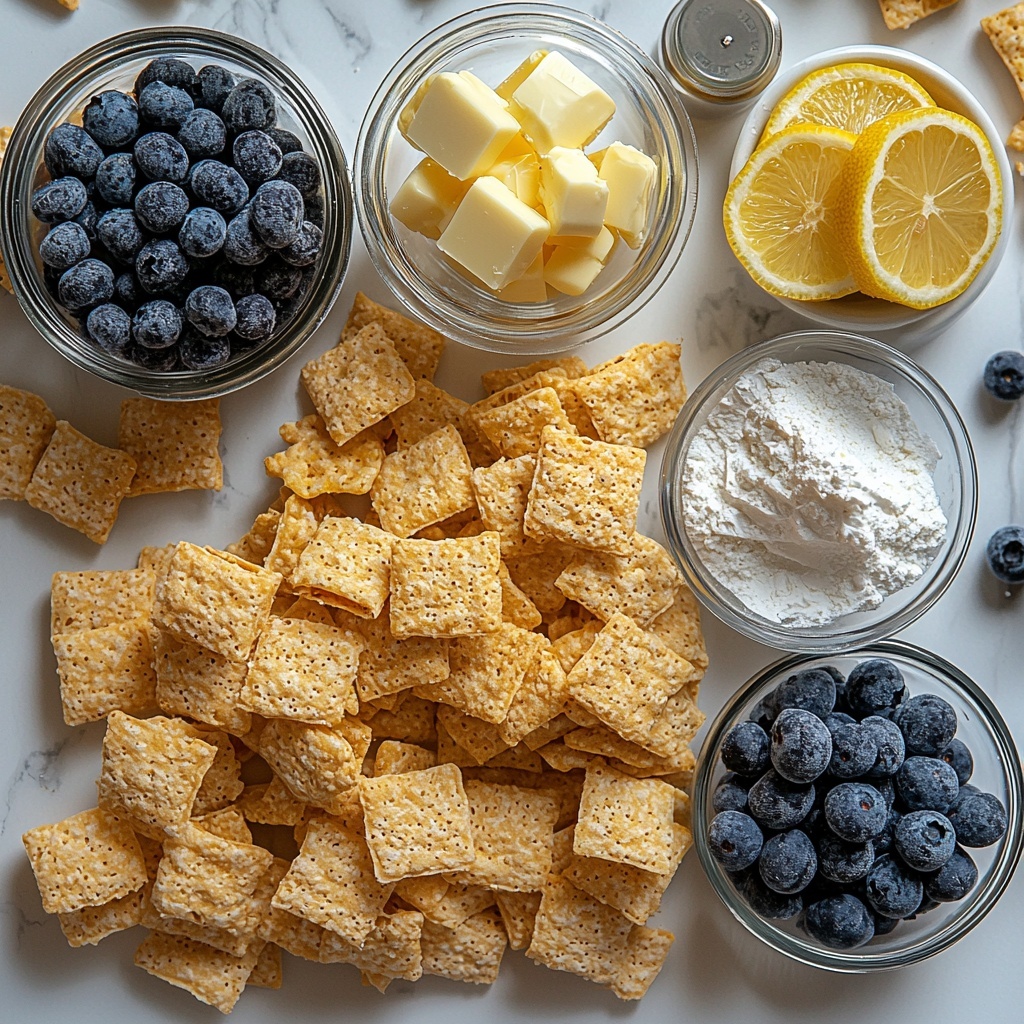 Gathering the right ingredients is key to nailing this Unique Blueberry Lemon Cheesecake Puppy Chow Treat Recipe. Each one plays a specific role—from the crisp cereal that forms the base, to the luscious white chocolate and zesty lemon flavor, all accented by the subtle tartness of freeze-dried blueberries.