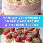 This Vanilla Strawberry Ombre Cake is a beautifully layered dessert featuring light and fluffy vanilla sponge cakes tinted in varying shades of pink to create a stunning ombre effect. Finished with creamy pink ombre buttercream frosting, fresh strawberries, and edible gold sprinkles, this cake is perfect for celebrations or any occasion that calls for a visually impressive and delicious treat.