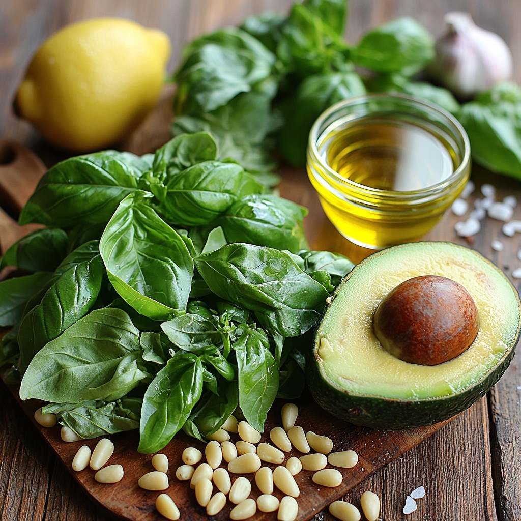 Gathering a handful of simple, wholesome ingredients is all it takes to whip up this luscious Vegan Avocado Pesto Recipe. Each one plays a special role in creating the perfect balance of flavor, creaminess, and that gorgeous green hue.